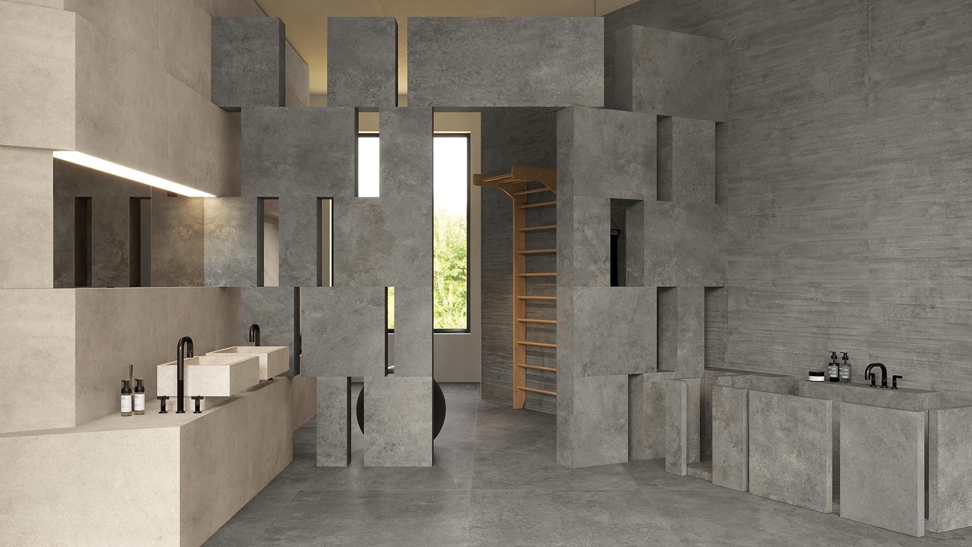 Gres Porcelánico Level Level Stone Cemento,piedra Baño Brera Imagen Galería | Emilceramica